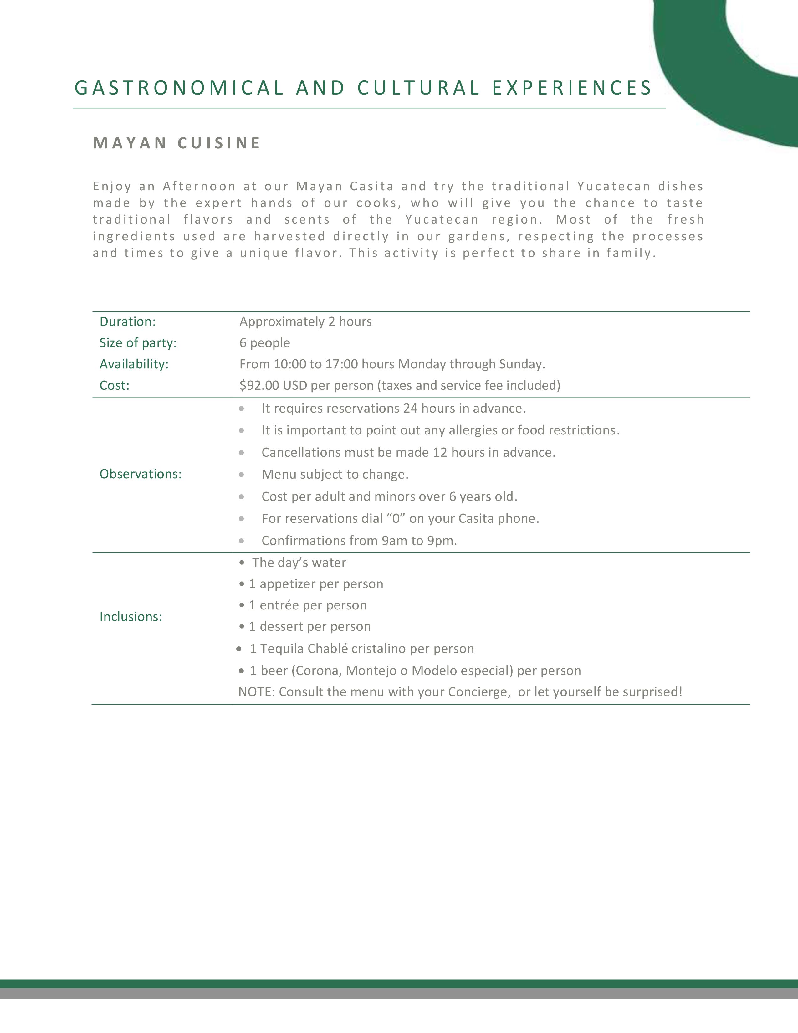 In case of a positive test result, we offer an individual casita or villa at a special rate. All food and